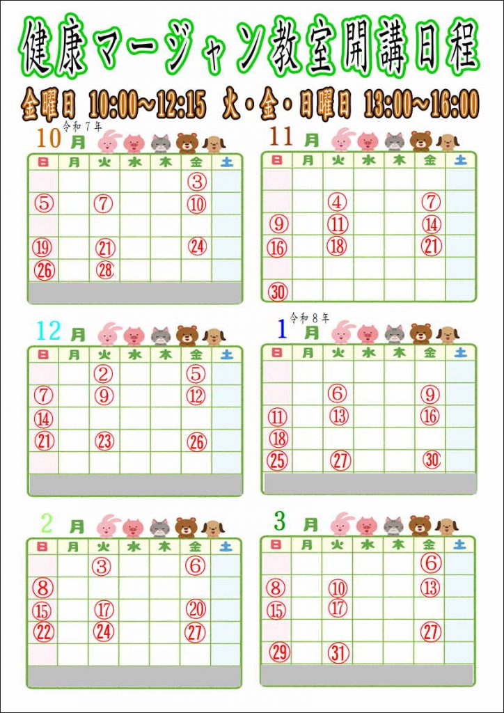 麻雀教室開講時間はオープン席は教室用に利用されます。