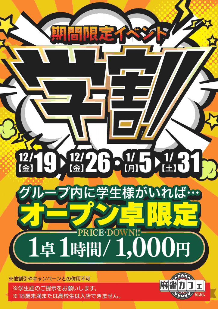 2026.01.05 最終更新日時 : 2026.01.05 パレパレ 田宮店 期間限定イベント「学割」「長時間割」実施中 期間限定で「学割」と「長時間割」を実施中です。 この機会に是非、ご来店ください。